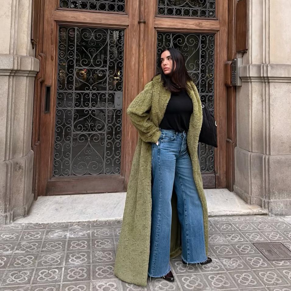 🌿 The Emerald Embrace: A Long Plush Coat for Urban Winters