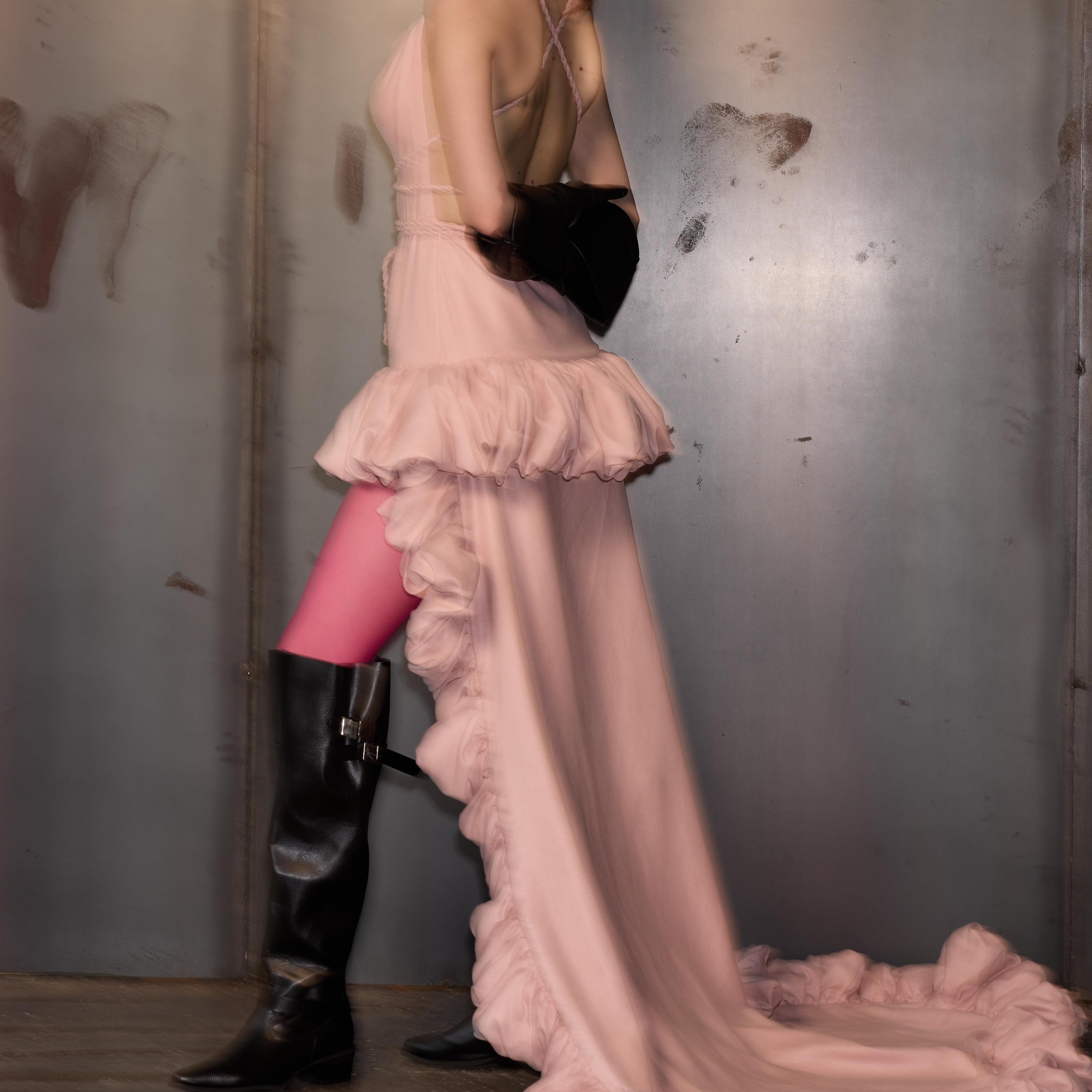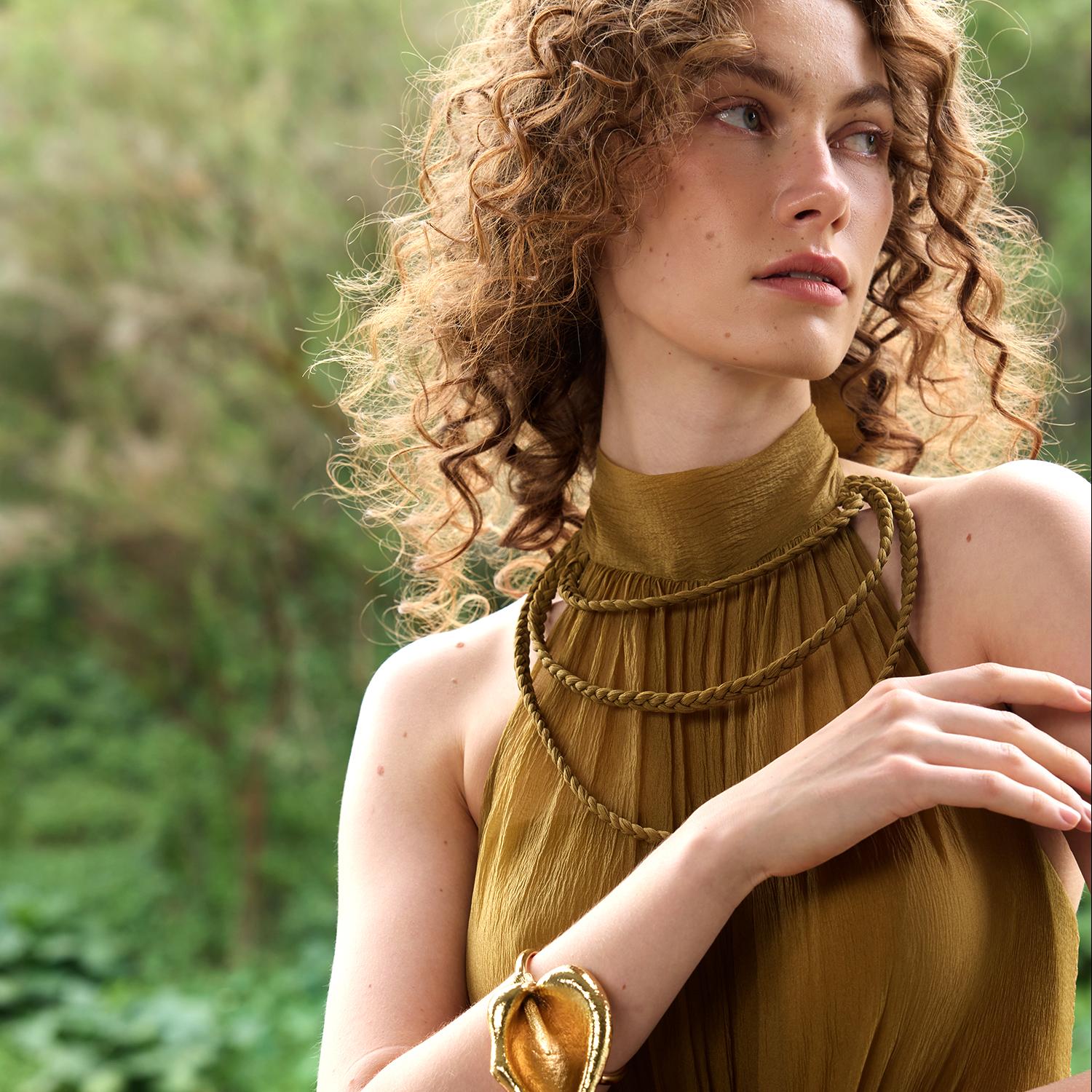 In our fabric philosophy at Skye&Iris, texture is attitude. Every material we choose reflects a quiet exchange between the wearer and her clothing. Slightly structured weaves offer gentle support, shaping the silhouette with refined resilience—never rigid, always considered. Softer fabrics move with ease, almost like a second skin, flowing with each step and revealing a calm, effortless presence. Together, they create a tactile rhythm that feels natural, breathable, and intimately connected to the body.