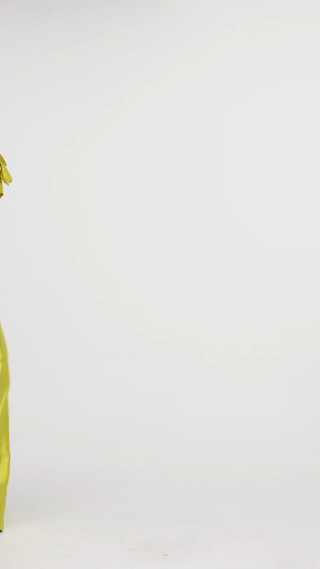 Design Details: Features an off-the-shoulder neckline, sleeveless cut, and a floor-length mermaid silhouette. Crafted from a bright yellow satin fabric with a lustrous finish, the gown incorporates a bold, oversized floral ruffle detail at the bodice, combining structured tailoring with dramatic, textural embellishment.Style & Occasion: Blends avant-garde drama (oversized floral ruffle, mermaid cut) with luxury elegance (satin fabric, floor-length design). Suitable for red-carpet events, high-fashion galas, or statement-making evening occasions, exuding bold artistry and opulent charm.